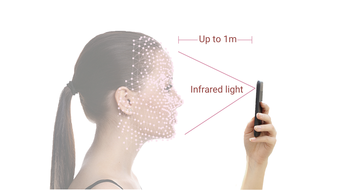 The iPhone shines a grid of 30,000 infrared dots on a face and makes a crude 3D model.